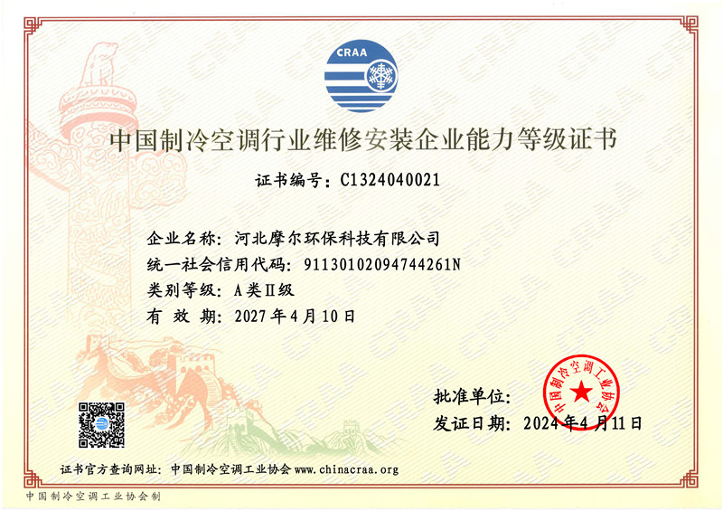Refrigeration and Air Conditioning Maintenance Capability Class A class 2