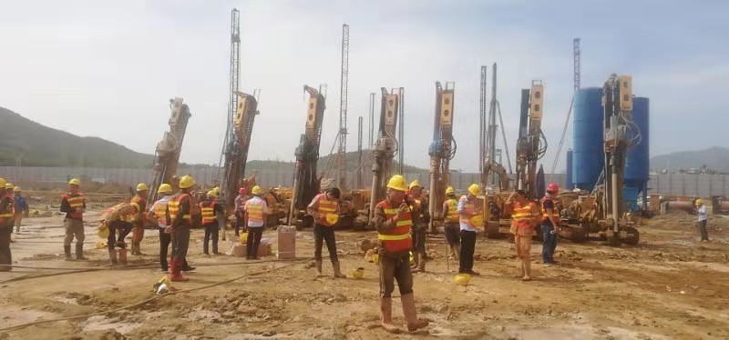 深圳“錨桿大王”王總七臺(tái)秋田錨固鉆機(jī)同時(shí)助力清遠(yuǎn)工地,十余萬(wàn)米的工地一人包攬!此工程為保利集團(tuán)住宅項(xiàng)目,主要工程為旋噴引孔,平均施工深度為45米左右,使用146套管,鉆機(jī)成孔時(shí)間為一小時(shí)左右。