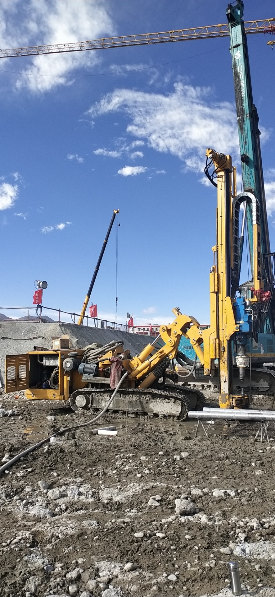 此項(xiàng)目為西藏拉薩文化宮的基礎(chǔ)建設(shè),設(shè)備使用的是為客戶(hù)定制的高原版BHD-215錨固鉆機(jī),該鉆機(jī)完美適應(yīng)高海拔地區(qū)的施工環(huán)境,立孔施工,使用146套管,施工深度為35米,平均1.5小時(shí)成孔。
